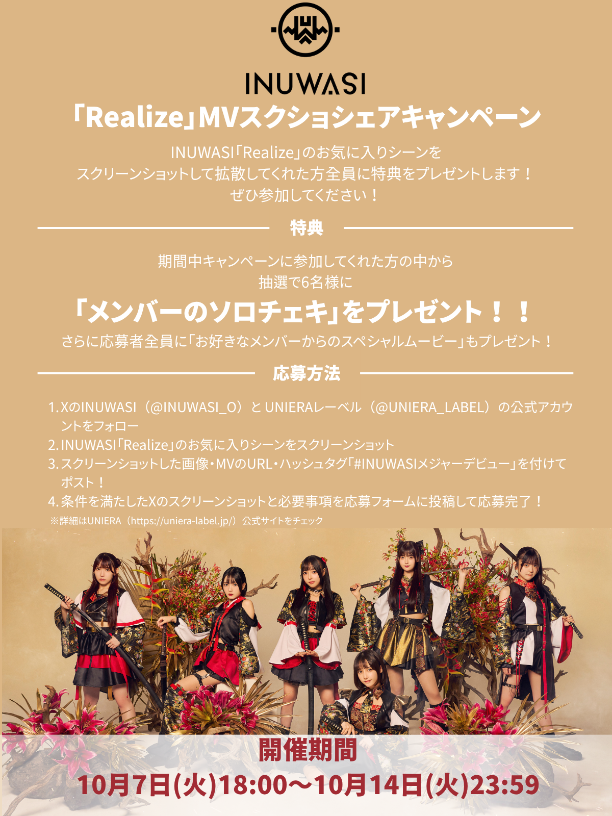 INUWASI「Realize」MVスクショシェアキャンペーン開催!